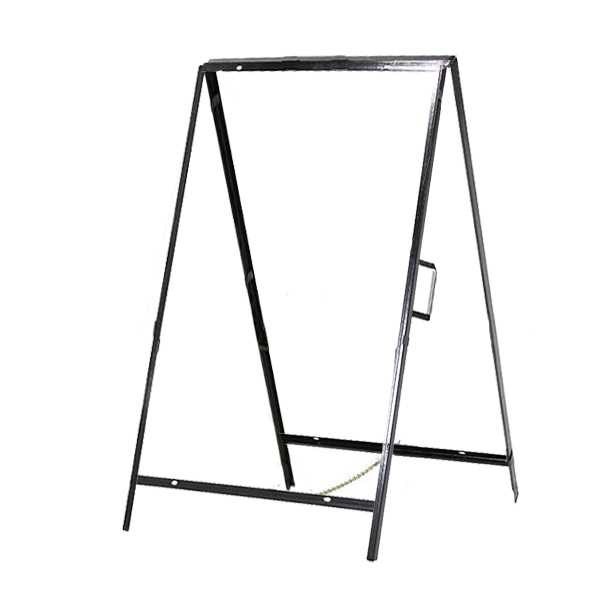 These metal top loading A frames are black coated metal, that can be used both indoors and outdoors. They are very easy to use and maintain, simply insert the graphic panel into the top slot of the sign and set into place. Compatible with rigid materials such as 3mm aluminum composite material (ACM), plywood, aluminum sheets, coroplast and PVC foam, etc.