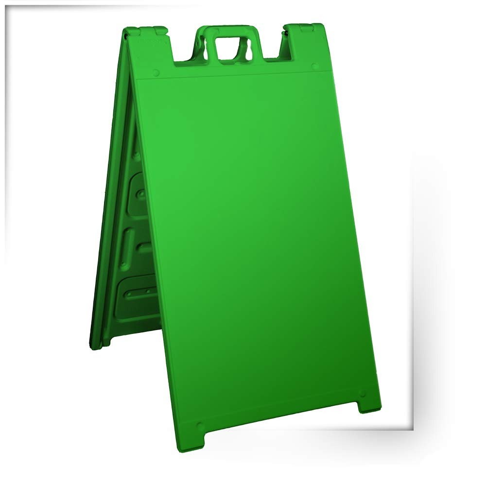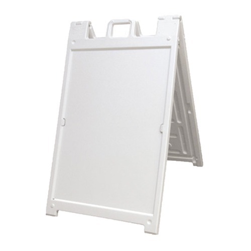 Signicade is the most cost effective way to advertise events, promotions, help wanted, sale items and brand development. A double sided A-Frame sandwich board frame with solid plastic surface with unique quick change feature holds sign inserts made of Coroplast, or any other material 3/16" or less (Sold separately). Stay Tabs ensure sign inserts stay securely in place and make it quick and easy to change sign inserts with out altering the A-Frame or sign board.